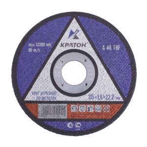 Отрезной круг Кратон применяется для резки различных металлов и их сплавов. Состоит из абразивного полотна (абразивное зерно + связующая смола), армированного специальной сеткой, которая придает диску дополнительную прочность. Предназначен для ручных угло-шлифовальных машин и стационарного оборудования. Характеризуется высокой твёрдостью и прочностью, что позволяет делать рез быстро,без перегрева металла и появления заусенцев.