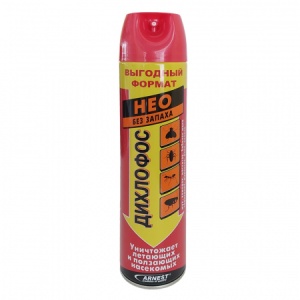 Универсальное средство от насекомых в аэрозольной упаковке, доказавшее свою эффективность на опыте четырёх поколений пользователей. Незаменимое в домашнем хозяйстве универсальное средство для борьбы со всеми видами бытовых насекомых. В составе современного Дихлофоса — сочетание трёх современных действующих веществ, усиленное специальным веществом-синергистом. Не оставляет насекомым шанса выжить. Уничтожает все виды бытовых насекомых: мух, комаров, тараканов, муравьёв, бабочек моли, клопов, блох и других. Создаёт защитный барьер на обработанных поверхностях, действует до 2 недель. Современная формула из трёх действующих веществ. Удобный спрей-колпак с трубкой обеспечивает фокусное распыление, удобное для обработки щелей. Не имеет запаха.