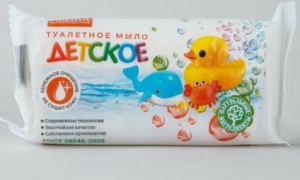 Мыло туалетное «Детское» марка (Д). Мыло обладает невероятным свежим ароматом, нежно очищает и увлажняет кожу, прекрасно пенится. Это уникальное мыло произведено из высококачественного натурального сырья. Его гипоаллергенный состав не вызывает раздражений. Подходит для всех типов кожи.