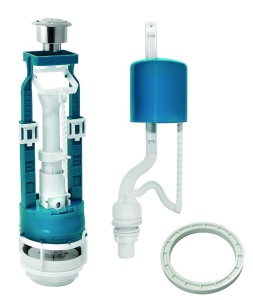 Двухрежимный кнопочный универсальный механизм слива с функцией регулировки малого слива в комплекте с нижним наполнительным клапаном противодавления.