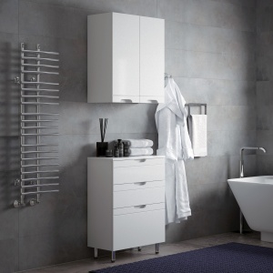 Корпус ЛДСП белый, фасады МДФ в белой плёнке ПВХ.