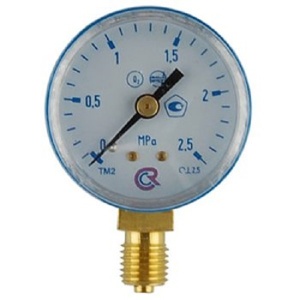 Манометры типа ТМ серия 10 предназначены для измерения давления жидких и газообразных, не вязких и не кристаллизующихся измеряемых сред, неагрессивных к медным сплавам. Широко применяются в баллонных редукторах и регуляторах. Манометр для кислорода (O2) производится с диаметром корпуса 50 мм. Класс точности: 2,5. Корпус манометра для редуктора выполнен из стали. Прибор имеет радиальное присоединение, резьба присоединения М12х1,5. Измеряемая среда- кислород. Диапазон показаний давлений- 0-2,5 МПа.