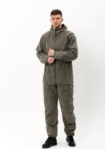 Центральная застежка куртки на 2х замковую влагостойкую молнию. Карманы удобно расположены в боковых швах и закрываются на молнию. Капюшон регулируется эластичным шнуром. Внизу рукавов трикотажные манжеты. На локтях и коленях усиленные накладки. Низ куртки также регулируется эластичным шнуром. Низ брюк на резинке. Комфортная температура эксплуатации от +5 до +15.