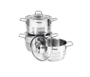 Набор кастрюль нержавеющая сталь 6 пр. MARUSYA 1,5/2,5/3 л, стеклянная крышка